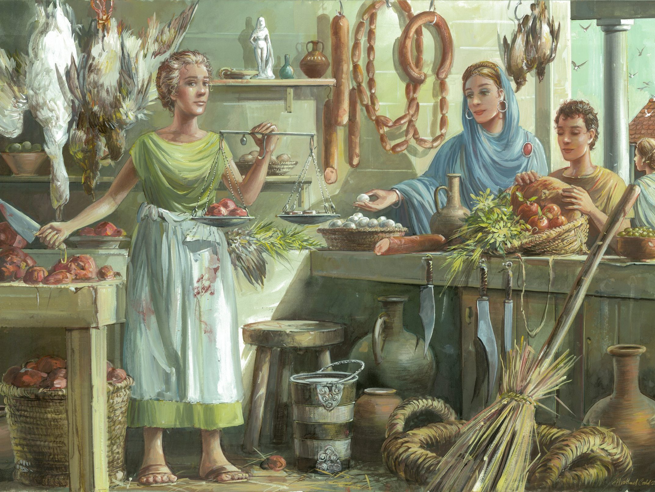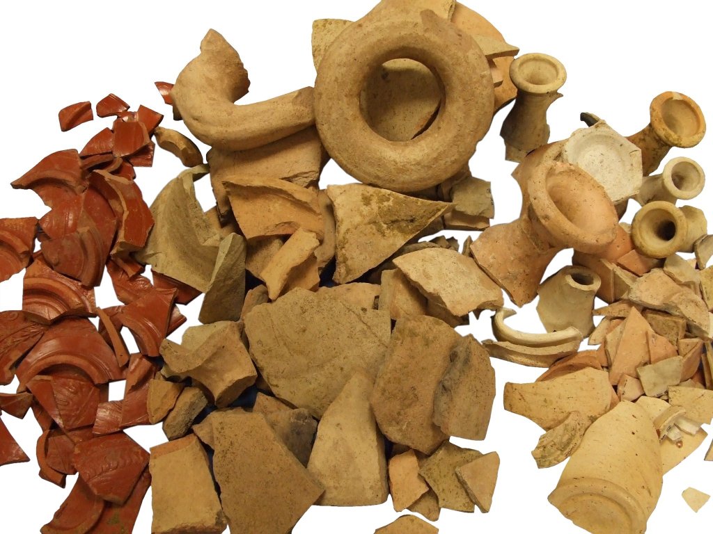 Archaeological excavations have shed new light on everyday life in Roman Leicester. The most common finds are sherds of broken pottery. Pottery was mass-produced in the Roman period making it a cheap, hard-wearing alternative to glass and metal, which could easily be replaced if broken. The inhabitants of Leicester used pottery from Cambridgeshire, Warwickshire and Dorset as well as wares imported from Spain, Gaul (France), Germany, Italy and North Africa. A wide variety of vessels was available, from fine table wares for serving food and drink to more utilitarian pots for cooking and storage. All would have been readily available to buy in shops and stalls in the forum, the macellum or elsewhere in the town. Food too was imported in large quantities, with olive oil, wine and fish sauce all brought by sea from the continent in large storage vessels called amphorae.